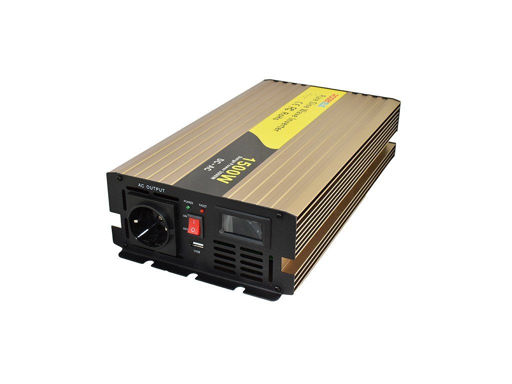Sinusový měnič se zásuvkou 230V/50Hz a USB výstupem pro nabíjení mobilních zařízení. Je vhodný pro napájení všech druhů spotřebičů s odporovou zátěží a také pro spotřebiče s indukční zátěží jako jsou motory, čerpadla, ledničky, zářivky atd. Hodí se rovněž pro spolehlivé a bezpečné napájení televizorů, počítačů, tiskáren, měřících přístrojů a jiných el. spotřebičů s citlivou elektronikou. K dostání v provedení pro 12V baterie, či více propojených baterií s celkovým napětím 24V nebo 48V.