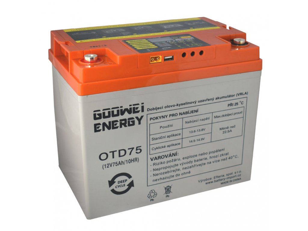 Nová generace HIGH TECH akumulátorů GOOWEI ENERGY řada OTD-DEEP CYCLE. Gelové akumulátory značky GOOWEI ENERGY řada OTD-DEEP CYCLE. Jedná se o uzavřené olověné akumulátory v provedení VRLA. Technologie hybridní GEL = elektrolyt je ztužen v hybridním gelu (kombinace s AGM), a tím je pevně vázán v útrobách článků, čímž je vyloučen jeho únik. Extra silná mřížka článků zajišťuje vysokou cyklickou odolnost, což tyto akumulátory předurčuje pro aplikace, kde dochází k častému a hlubokému vybíjení - cyklování.