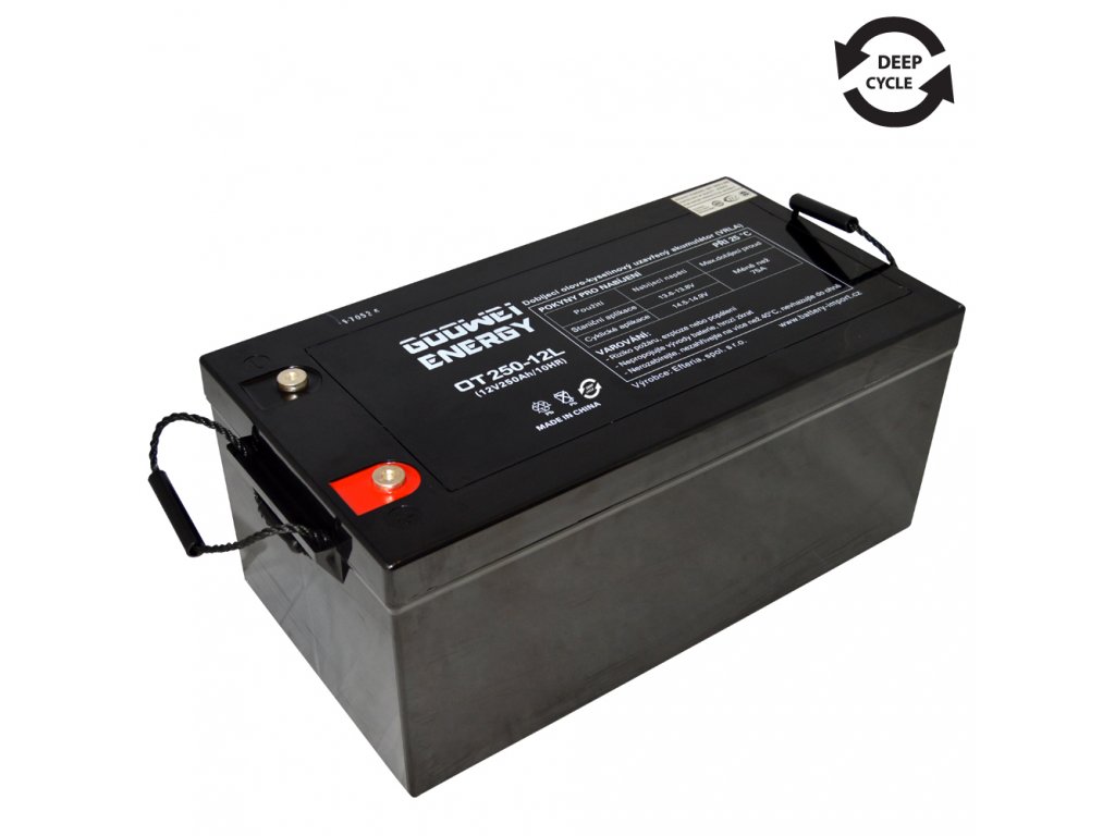 Gelové trakční akumulátory značky GOOWEI ENERGY řada OTL - DEEP CYCLE jsou privátní značkou naší společnosti. Na základě dlouholetých zkušeností v oblasti akumulátorů jsme ve spolupráci s výrobcem kladli důraz na vysokou jakostní kvalitu použitých materiálů (čistotu olova), dlouhou cyklickou životnost (extra silné mřížky článků) a maximální spolehlivost a bezpečnost akumulátorů v provozu. Jedná se o uzavřené olověné akumulátory v provedení VRLA. Technologie hybridní GEL = elektrolyt je ztužen v hybridním gelu (kombinace s AGM), a tím je pevně vázán v útrobách článků baterie, čímž je vyloučen jeho únik. Extra silná mřížka článků zajišťuje vysokou cyklickou odolnost, což tyto akumulátory předurčuje pro aplikace, kde dochází k častému a hlubokému vybíjení / cyklování. Akumulátory GOOWEI ENERGY řada DEEP CYCLE jsou velmi vhodné i pro staniční aplikace, kde slouží jako záložní zdroje v režimu „STAND BY“. Obzvláště vhodné jsou tam, kde dochází k častým výpadkům v dodávkách energie nebo tam, kde se baterie hluboce vybíjejí. Optimální životnost pro režim „STAND BY“ je uváděna 10-12 let, což odpovídá kategorii staničních akumulátorů řady „LONG LIFE“. Díky dlouhodobému kontraktu a přímému dovozu ze zakázkové výroby dokážeme tyto kvalitní akumulátory nabízet za velmi příznivé ceny! Výborný poměr cena / kvalita / výkon řadí akumulátory GOOWEI ENERGY řady OTL - DEEP CYCLE k nejprodávanějším akumulátorům na trhu.