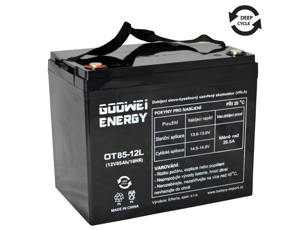 Gelové trakční akumulátory značky GOOWEI ENERGY řada OTL - DEEP CYCLE jsou privátní značkou naší společnosti. Na základě dlouholetých zkušeností v oblasti akumulátorů jsme ve spolupráci s výrobcem kladli důraz na vysokou jakostní kvalitu použitých materiálů (čistotu olova), dlouhou cyklickou životnost (extra silné mřížky článků) a maximální spolehlivost a bezpečnost akumulátorů v provozu. Jedná se o uzavřené olověné akumulátory v provedení VRLA. Technologie hybridní GEL = elektrolyt je ztužen v hybridním gelu (kombinace s AGM), a tím je pevně vázán v útrobách článků baterie, čímž je vyloučen jeho únik. Extra silná mřížka článků zajišťuje vysokou cyklickou odolnost, což tyto akumulátory předurčuje pro aplikace, kde dochází k častému a hlubokému vybíjení / cyklování. Akumulátory GOOWEI ENERGY řada DEEP CYCLE jsou velmi vhodné i pro staniční aplikace, kde slouží jako záložní zdroje v režimu „STAND BY“. Obzvláště vhodné jsou tam, kde dochází k častým výpadkům v dodávkách energie nebo tam, kde se baterie hluboce vybíjejí. Optimální životnost pro režim „STAND BY“ je uváděna 10-12 let, což odpovídá kategorii staničních akumulátorů řady „LONG LIFE“. Díky dlouhodobému kontraktu a přímému dovozu ze zakázkové výroby dokážeme tyto kvalitní akumulátory nabízet za velmi příznivé ceny! Výborný poměr cena / kvalita / výkon řadí akumulátory GOOWEI ENERGY řady OTL - DEEP CYCLE k nejprodávanějším akumulátorům na trhu.
