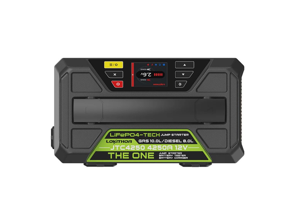 Lokithor JTC4250 je multifunkční startovací zdroj, přenosná nabíječka autobaterií, tester, powerbanka a reflektor.