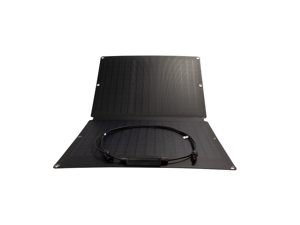 Součástí panelu je solární regulátor a propojovací kabely s konektory MC4 (solární) a USB-C, což umožňuje jeho široké univerzální využití.