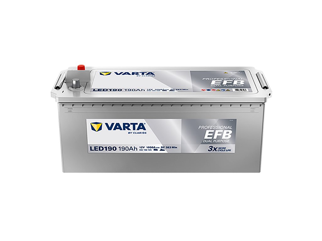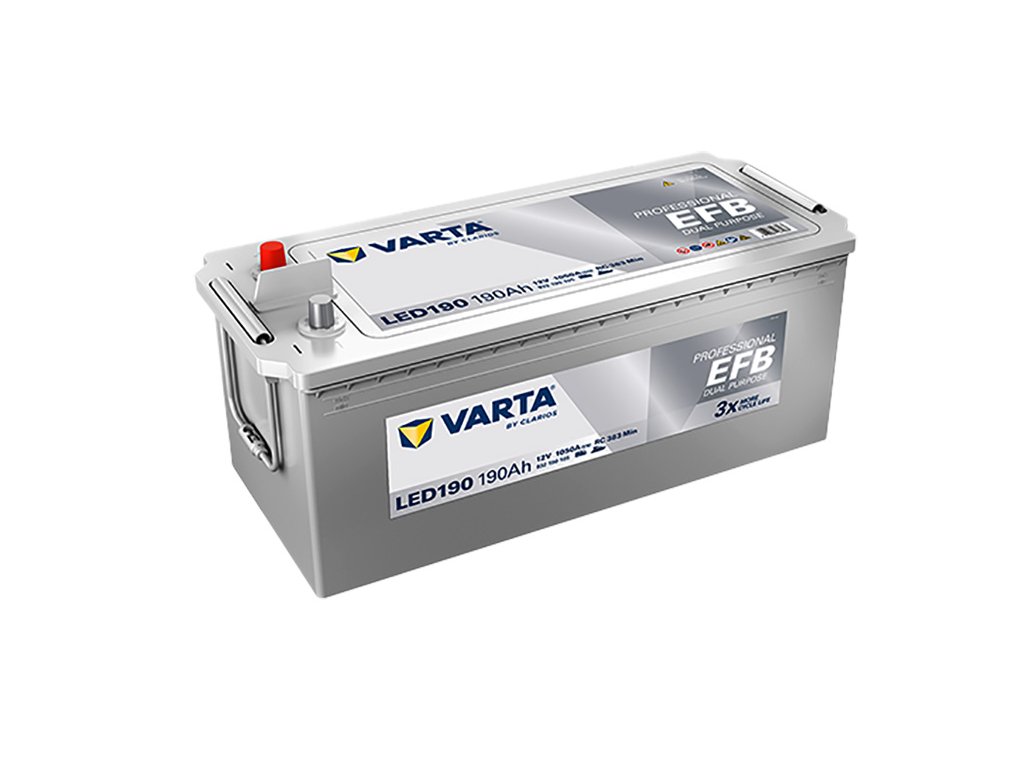 Trakční baterie VARTA Professional Dual Purpose EFB (PROFESSIONAL EFB) 190 Ah (20h) 12 V LED190. Stále za nejlepší cenu na trhu – nejlevnější trakce VARTA 190Ah. Nabízíme rovněž kompletní sortiment - autobaterie Varta - velké zásoby na skladě Praha a Brno.